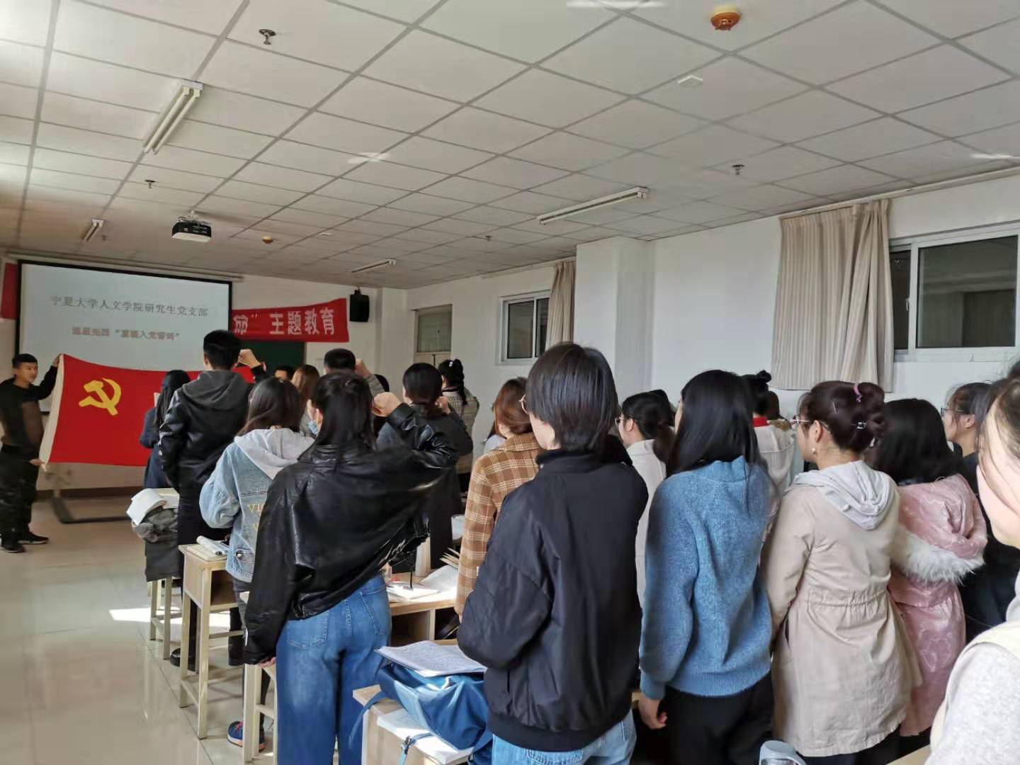 为了丰富“不忘初心、牢记使命”主题教育的形式及内涵,10月16日下午,人beat365在线官网入口研究生党支部全体党员在文科楼717教室举行重温入党誓词宣誓和观看爱国电影活动。