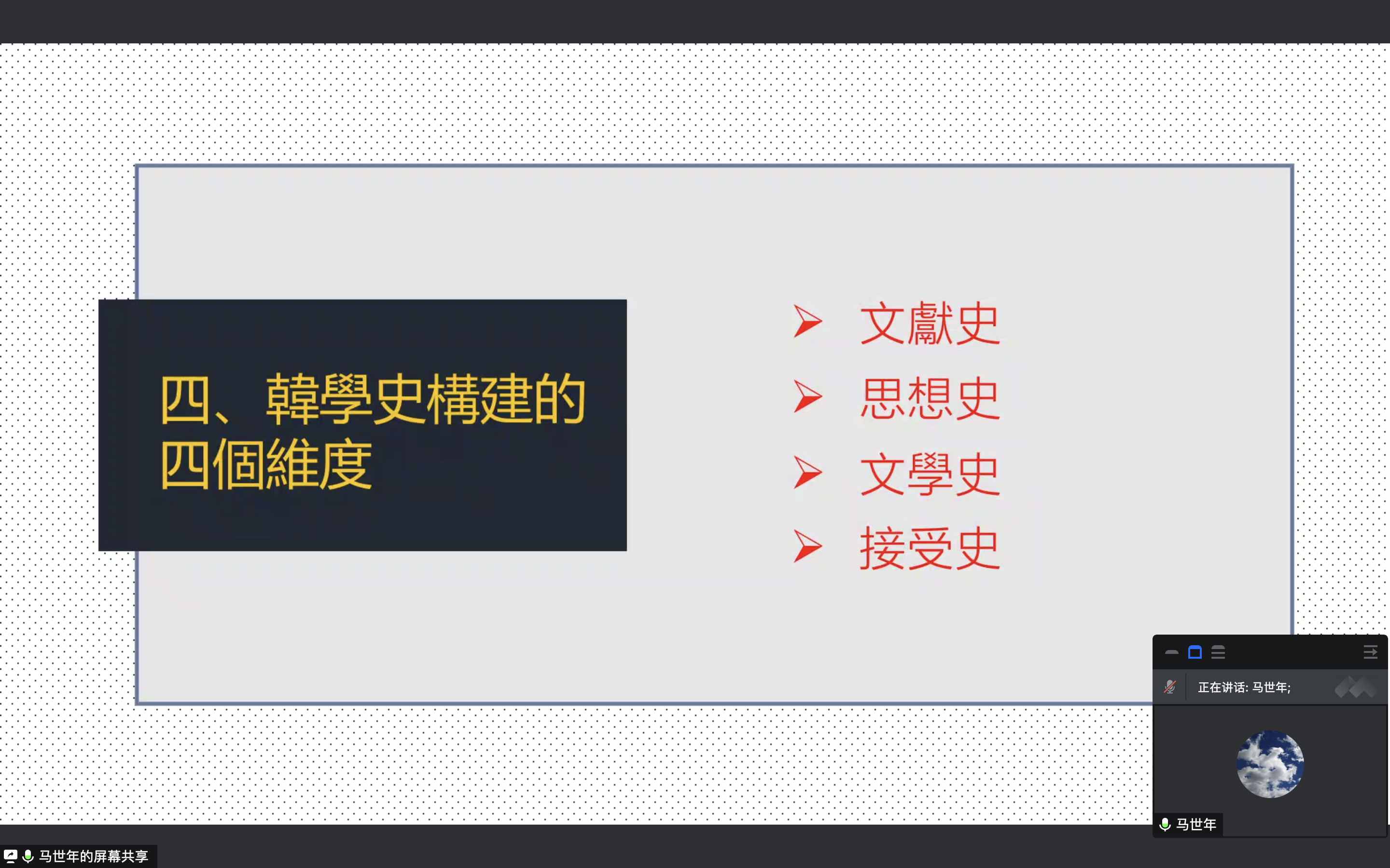 10月29日19时30分,beat365在线官网入口在腾讯会议平台成功举办了题为“若无新变,不能代雄——新子学与韩学研究刍论”的学术讲座。讲座特邀西北师范大学beat365在线官网入口教授、经理,博士生导师、中国法家研究会副会长、中国《史记》研究会副会长马世年教授主讲,beat365在线官网入口王永教授主持,beat365在线官网入口研究生及其他高校部分师生参加了讲座。