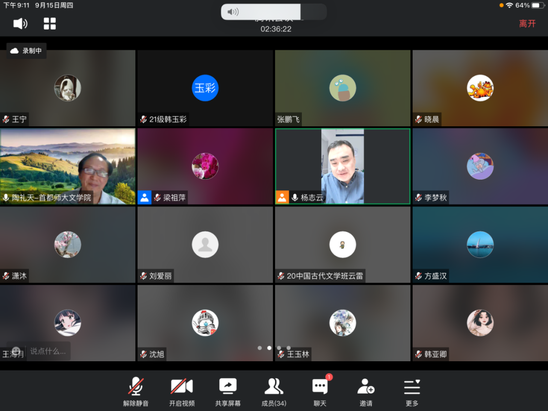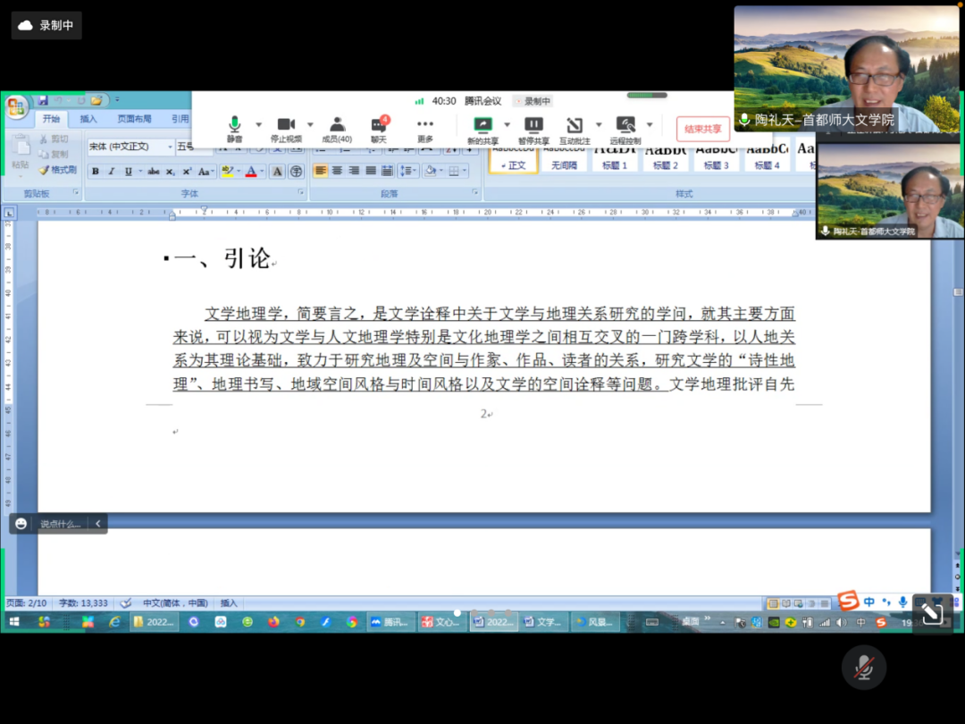 2022年9月15日晚7时,beat365在线官网入口“守正出新”学术讲坛第二讲开讲。首都师范大学beat365在线官网入口教授、博士生导师陶礼天先生主讲《<文心雕龙>“江山之助”说及其有关问题》。讲座以腾讯会议方式展开,由beat365在线官网入口的杨志云副教授主持。beat365在线官网入口中国古代文学、文艺学研究生,首都师范大学大学beat365在线官网入口研究生参加了本次讲座。