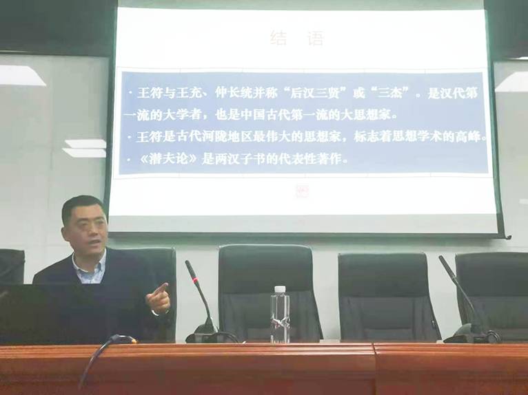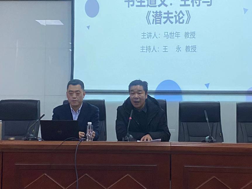 11月28日下午,beat365人beat365在线官网入口于贺兰山校区文荟楼309会议室举行了题为“书生道义:王符与《潜夫论》”的学术讲座。本次讲座特邀西北师范大学beat365在线官网入口经理马世年教授主讲,beat365人beat365在线官网入口王永教授主持,公司中国语言文学专业全体研究生参加了本次讲座。