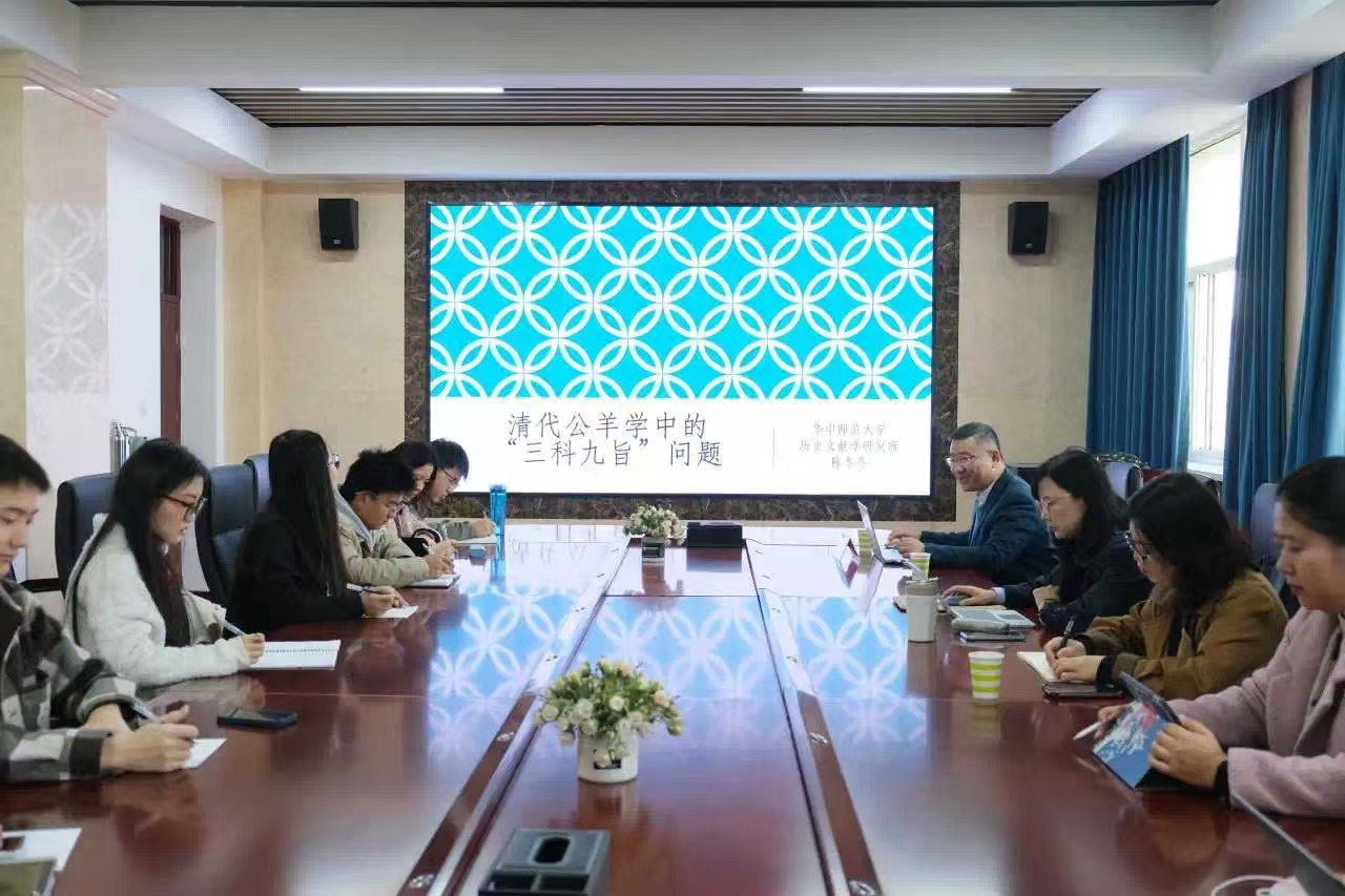 2024年11月1日上午9点30分,beat365在线官网入口于怀远校区怀远楼514室举办了题为“清代公羊学中的‘三科九旨’问题”的学术讲座。本次讲座由华中师范大学历史文化公司历史文献学研究所副所长、副教授、硕士生导师陈冬冬主讲,beat365在线官网入口副教授邵敏主持。