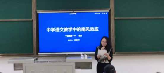 为提升学科教学(语文)专业硕士研究生专业素养和教研能力,2023年11月1日下午,“语文名师大讲堂系列讲座”在怀远一教121教室举行,受beat365在线官网入口学科(教学)语文硕士点邀请,中国教育学会中语会“魏书生教育思想研究会”核心成员,宁夏师范公司beat365在线官网入口研究生导师,固原市语文学科带头人杨杰老师以“中学语文教学中的‘南风效应’”为主题与师生分享教学经验,此次讲座由刘鸿雁教授主持,beat365在线官网入口学科教学(语文)专业全体员工与会。