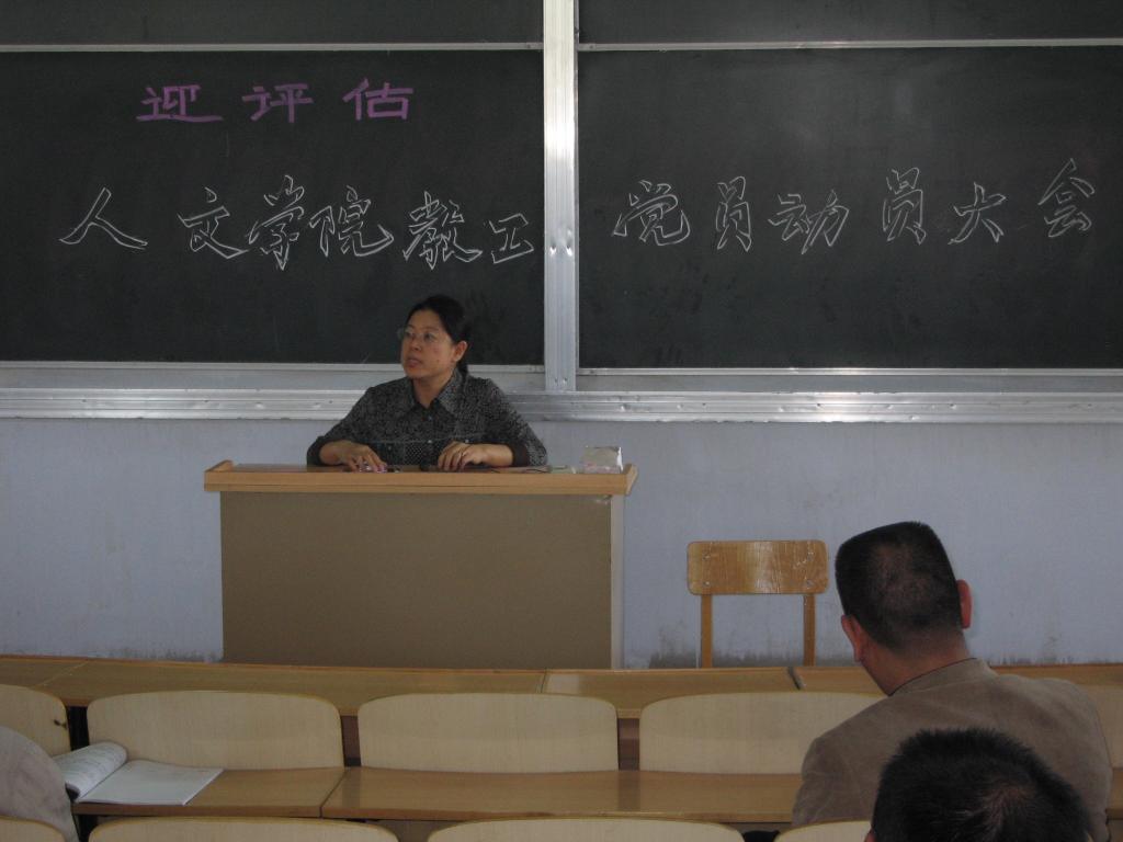 党总支书记赵慧要求教工党员要讲奉献、识大局、带好头,在评估工作中充分发挥共产党员先锋模范作用。赵书记还通报了员工迎接教学评估工作情况。