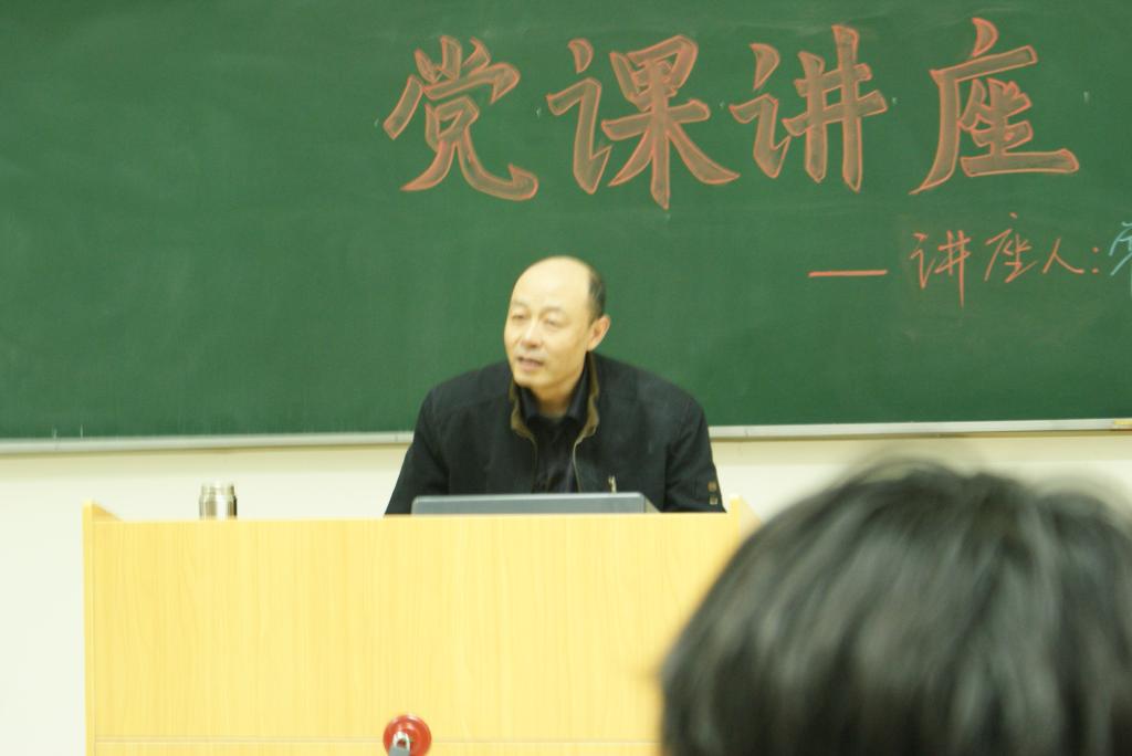 党课讲座由党总支副书记陈柯副教授主持,员工工作办公室李斌老师参加了讲座。( 文:09级新闻班 李璐宏 摄影:09级新闻班 杨建龙 )