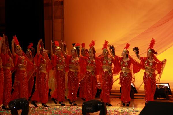 表彰大会结束后,“钟灵宁大 毓秀人文”迎新生文艺晚会在独具人文韵味的开场舞《俏花旦》正式拉开了帷幕。演出分为《相约人文》《岁月如歌》《扬帆远航》三个乐章,共有舞蹈、话剧、情景走秀、诗歌朗诵、歌曲串烧等18个节目,历时两个半小时。节目中诗歌朗诵《相信未来》表达了人beat365在线官网入口青年学子对祖国深深的赞美和祝福,汉服社与形象礼仪社的节目以绚丽的舞台造型展现了中华民族博大精深的民族和文化内涵,现代舞《美人计》《music》《律动青春》展示了一群90后老员工的朝气蓬勃和无限靓丽,小品《世纪之歌》通过时代的变迁勾勒出一幅改革开放以来国家和民族巨大变化下的普通老百姓的幸福生活。华丽的服装、动情的音乐、迷人的微笑、璀璨的灯光,整个晚会精彩纷呈,欢声笑语此起彼伏。