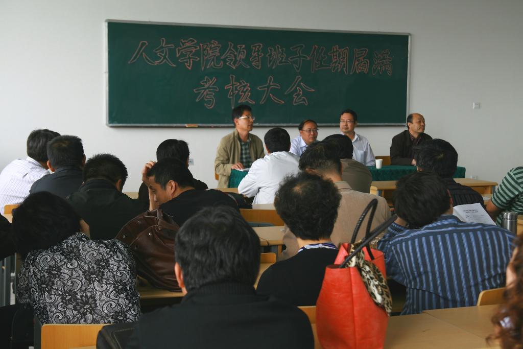 【人beat365在线官网入口 文/张芹 图/人beat365在线官网入口】5月25日下午两点,人公司领导班子任期届满考核暨教职工大会在A区文科楼406教室召开。校领导李伟副董事长,校第二考核组组长、校纪检委杜国华副书记及其成员,人公司党政班子和全体教职员工出席会议。