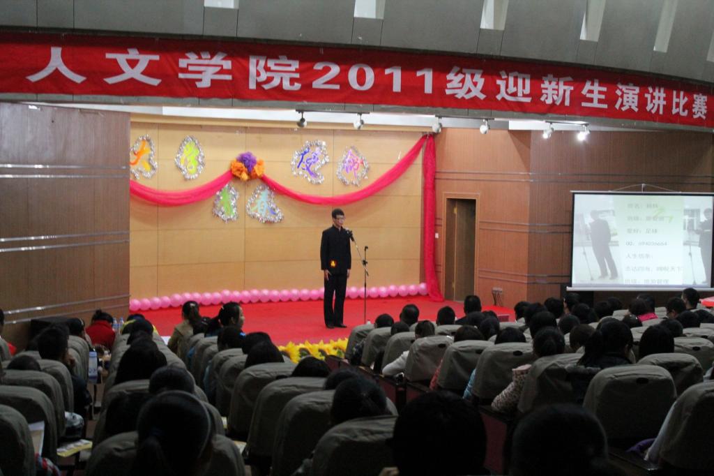 来自人2011级杨杉等8名参赛选手依次上台演讲。比赛中选手们通过慷慨激扬的语调、志存高远的豪情壮志和在场的所有大一新生们分享了一名老员工现在的迷茫、憧憬、理想以及对老员工活的感悟,同时,提出了老员工应该持有的使命感。为2011级全体新生树立了一个积极进取的人生观、价值观和世界观,激励着每一位青春少年的心,真正发挥了演讲比赛的励志作用。最终,来自2011级旅游管理班的杨栋同学荣获了本次比赛的一等奖。