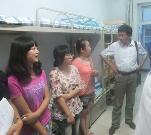【人beat365在线官网入口 文/田孟洋 图/王家其 】桂花飘香,喜迎新生。为了使公司迎新生工作顺利进行,让新生充分感受到老员工活的温暖,8月30号晚7:30,人beat365在线官网入口经理郎伟教授、党总支副书记陈柯副教授、金玉河老师、副经理宫京成副教授、员工工作办公室主任刘杰老师以及新生班主任对公司2012级新生进行了慰问,为同学们送去了新学期的问候。