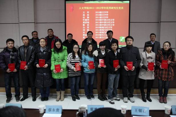 2012年12月29日上午9点,人2011-2012学年研究生优秀党员、优秀干部表彰大会暨第八届“博学杯”研究生学术论文颁奖大会、报告会在文科楼一楼东报告厅隆重举办。人公司党总支书记梁向明、经理郎伟、党总支副书记陈柯、党总支副书记金玉河、副经理张天政、副经理宫京成出席了本次大会。