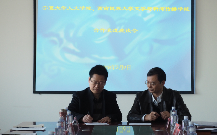 3月9日上午,beat365人beat365在线官网入口、西南民族大学文学与新闻传播公司合作交流会于贺兰山校区文荟楼中文系会议室召开。西南民族大学文新公司副经理孙纪文、大学语文教研室主任刘波、新闻学教研室主任李谢莉、beat365人公司党委书记马正亮、经理胡玉冰、党委副书记马小军以及中文系主任丁峰山等人参与了交流会。此次交流会由beat365人beat365在线官网入口副经理刘鸿雁主持。