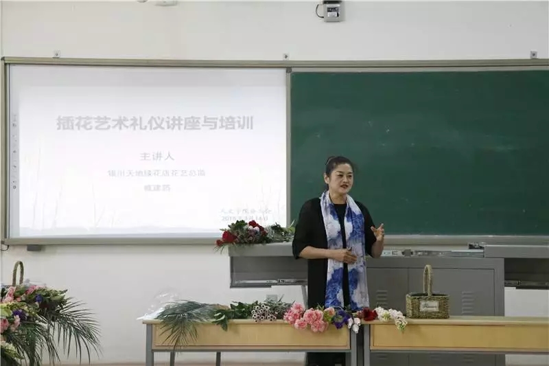 为了庆祝第108个国际妇女节,丰富公司女性教职工的业余生活,弘扬中国传统插花艺术,公司于3月14日下午在文荟楼401教室举行插花艺术礼仪讲座和培训活动。活动由公司党委副书记金玉河主持,银川天地缘花店花艺总监戚建筠主讲,公司女教工及部分女员工代表参加。
