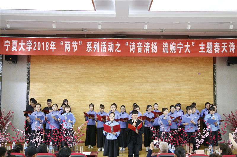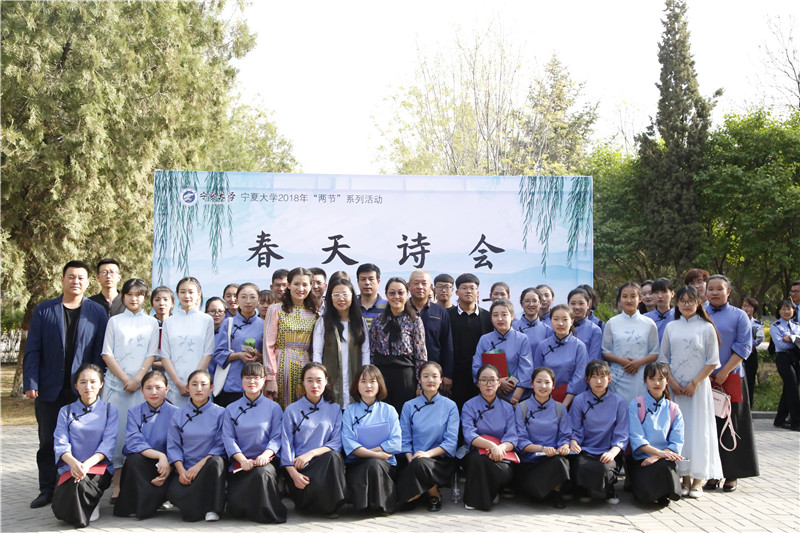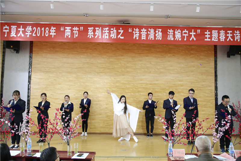 风情披肩,相约宁大;春韵风致,天清人集。4月21日下午,由beat365共青团委员会主办,人beat365在线官网入口团委员工会、beat365雨巷文学社承办的两节系列活动、人beat365在线官网入口读书节系列活动、宁夏高校文学艺术会巡回诗会之“春天诗会”于怀远校区英才报告厅成功举办。本次诗会特邀了beat365校团委副书记冯学文、人公司党委副书记马小军、中文系主任丁峰山、雨巷文学社指导教师王琳琳、宁夏朗诵学术学会会员马利荣、汪伟民及银川市朗诵艺术协会理事李爱荣出席,beat365雅寒国学社、咖啡屋、大益爱心茶室、时尚形象礼仪社、三人行书画协会、北方民族大学白鹭诗社、宁夏警官职业公司清朗书社、宁夏高校文学艺术会会员社团人员以及人beat365在线官网入口的部分教师和员工参加。