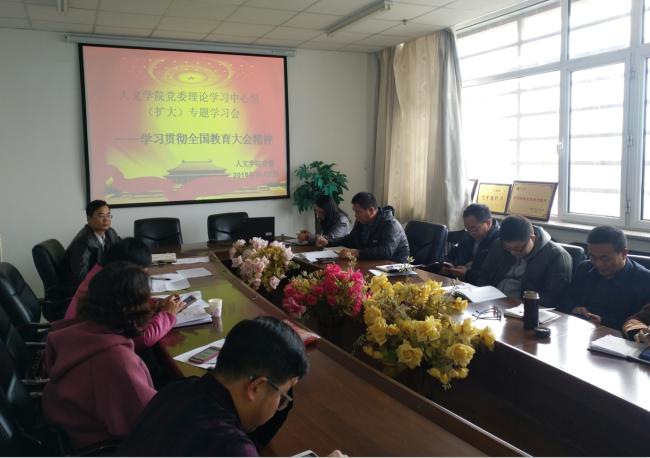 11月7日,人公司党委理论学习中心组(扩大)专题学习2018年9月10日召开的全国教育大会精神。公司党委委员、民主人士、基层党支部书记、“三办”负责人和三系主任出席,学习会由公司党委副书记金玉河主持。