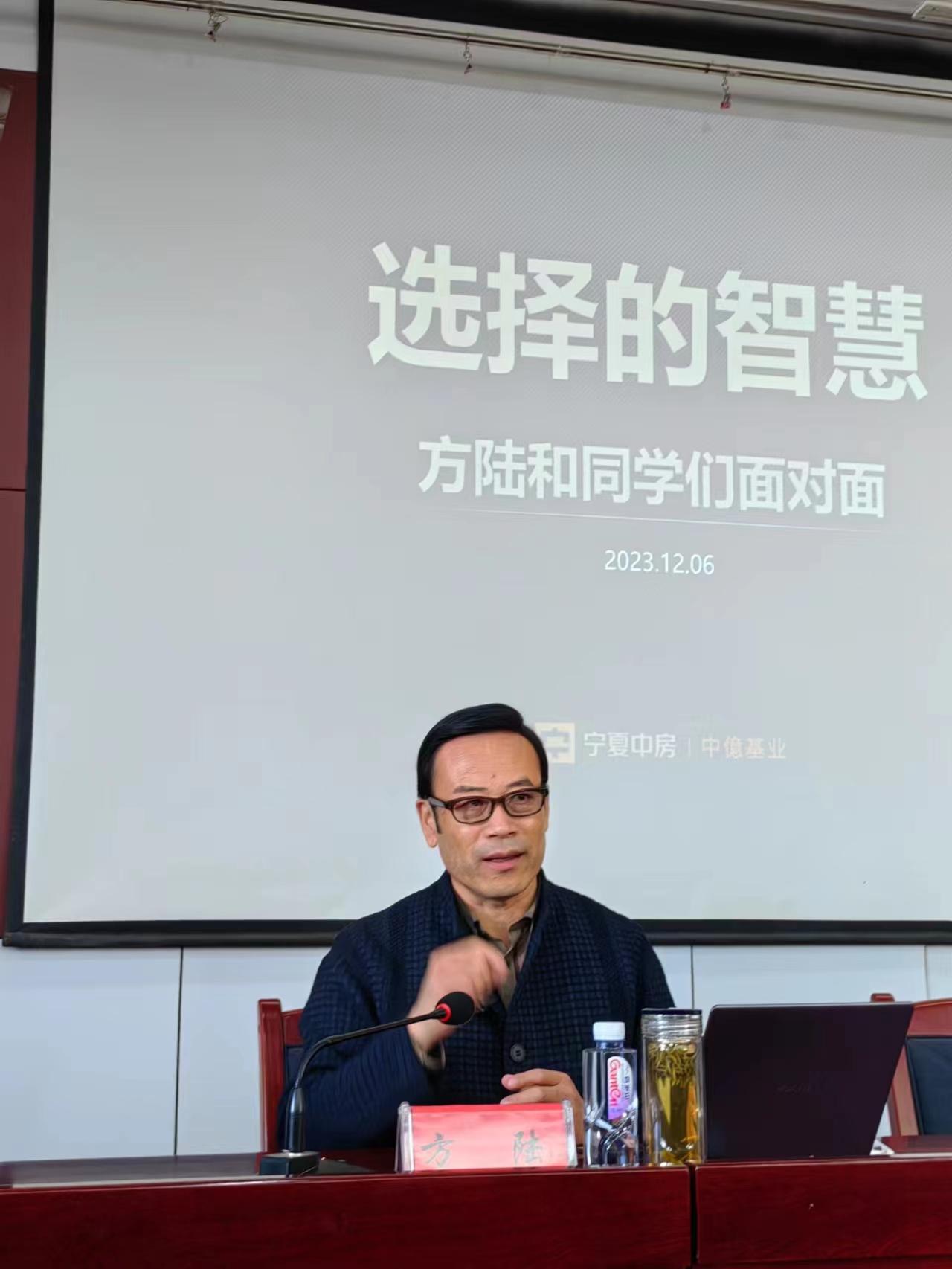 方陆在讲座中分享自己的人生经历