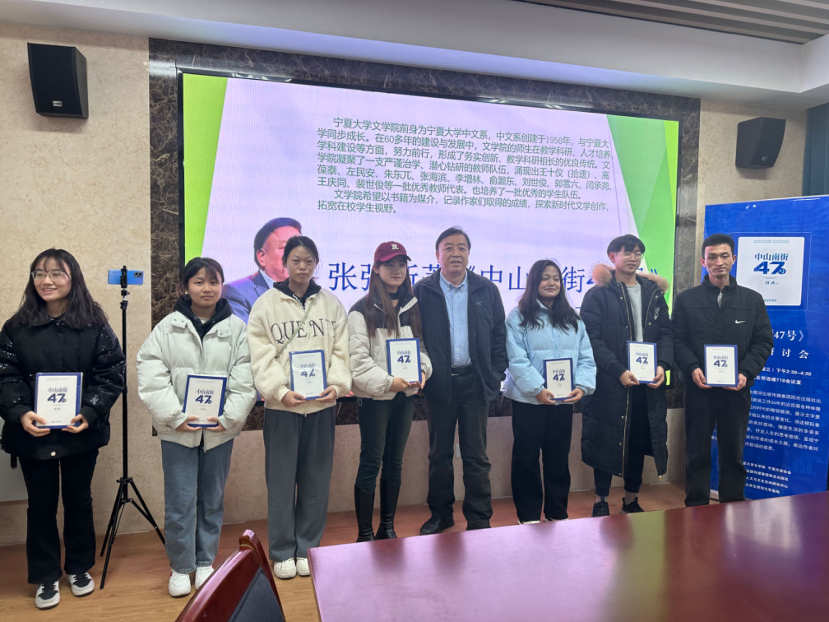 12月13日下午,beat365在线官网入口于beat365怀远校区怀远楼718室举办了“张强新著《中山南街47号》”分享及研讨会。张强是beat365中文系首届新闻专业毕业生,高级记者,历任宁夏日报报业集团总编辑助理、《宁夏日报》总编室主任、《现代生活报》总编辑、《宁夏法治报》总编辑、《看天下》杂志总编辑等。