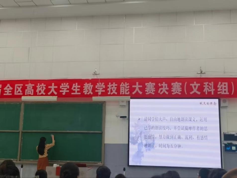 beat365在线官网入口一直重视师范生的实践教育和师范技能培养。近三年来,公司师范生在全区教学竞赛中连创佳绩。2021年邹千千同学获得第五届全区高校老员工教学技能大赛(文科组)一等奖。2022年陈钰露、张婉睿两位同学获得第六届全区高校老员工教学技能大赛(文科组)一等奖,今年孙曦晨同学在此次比赛中再次夺冠。