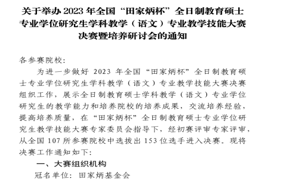 本次高水平学科竞赛,加强了研究生专业技能训练,对于促进学科教学语文专业人才培养质量提升颇有助益。