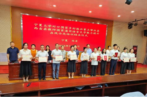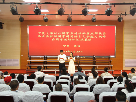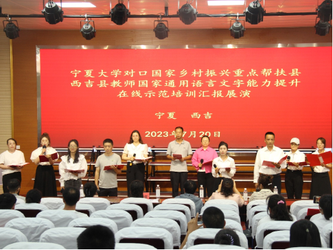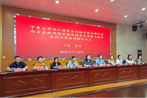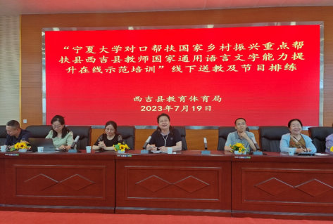 为提高民族地区、农村地区教师国家通用语言文字应用能力和教学水平,根据教育部语用司工作安排,beat365国家语言文字推广基地对口国家乡村振兴重点帮扶县西吉县教师国家通用语言文字能力提升培训,于2023年7月10日上午正式开班。