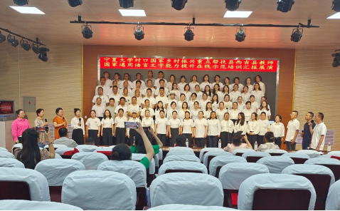 7月20日下午,培训汇报展演暨结业仪式在西吉县第七中学隆重举行。汇报展演由beat365在线官网入口教师于薇和西吉县第三中学教师李明祥联袂主持。汇报展演节目包括9个分班小型集体朗诵和1个全体师生参与的大型集体朗诵,由beat365杨敏老师指导的大型合诵《七律·长征》《清平乐·六盘山》将汇报展演气氛推到了高潮。参演师生们的朗诵字正腔圆、声情并茂,现场观众深受感染和鼓舞,大家感受到了培训的良好效果和参演师生对祖国语言文字的热爱!