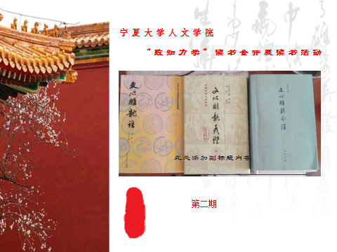 作为文学专业的员工,《文心雕龙》是非常重要的古代文献。本书除序言外共49篇,其中包括总论、文体论、创作论、鉴赏论。但是因其铺锦列绣的骈文体制,给现代人的阅读带来极大障碍,需要循序渐进。因此杨老师首先对《文心雕龙》的各个版本进行了介绍,并做了阅读顺序的讲解。