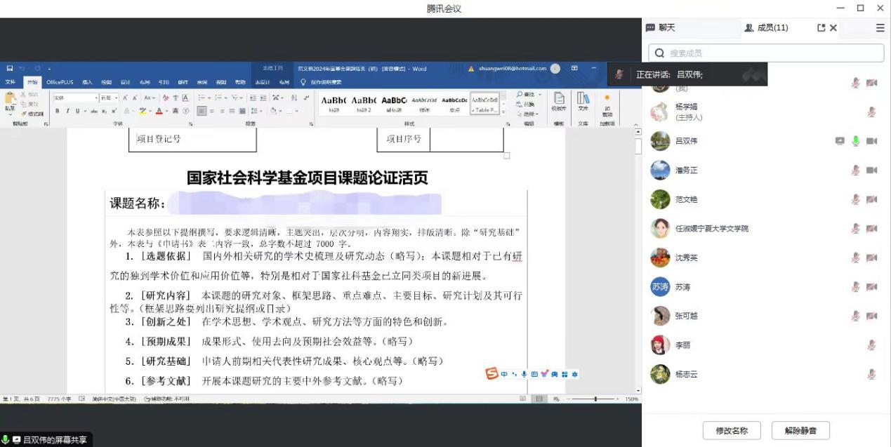 2月3日、2月4日上午,beat365在线官网入口以线上会议的方式组织开展了2024年国家社会科学基金项目校外专家评审会,会议分为文学、语言学专场进行。此次评审会邀请吉林大学张丛皞教授、山东大学杨建刚教授、安徽师范大学潘务正教授、湖南师范大学吕双伟教授、辽宁师范大学杨春宇教授、杭州师范大学杨建忠教授作为评审专家,对公司申报的国社科基金项目进行点评。会议由副经理刘鸿雁主持,beat365在线官网入口沈秀英、任淑媛、苏涛、杨学娟、张可越、杨志云、范文艳、刘贺、杨敏参加了论证会。