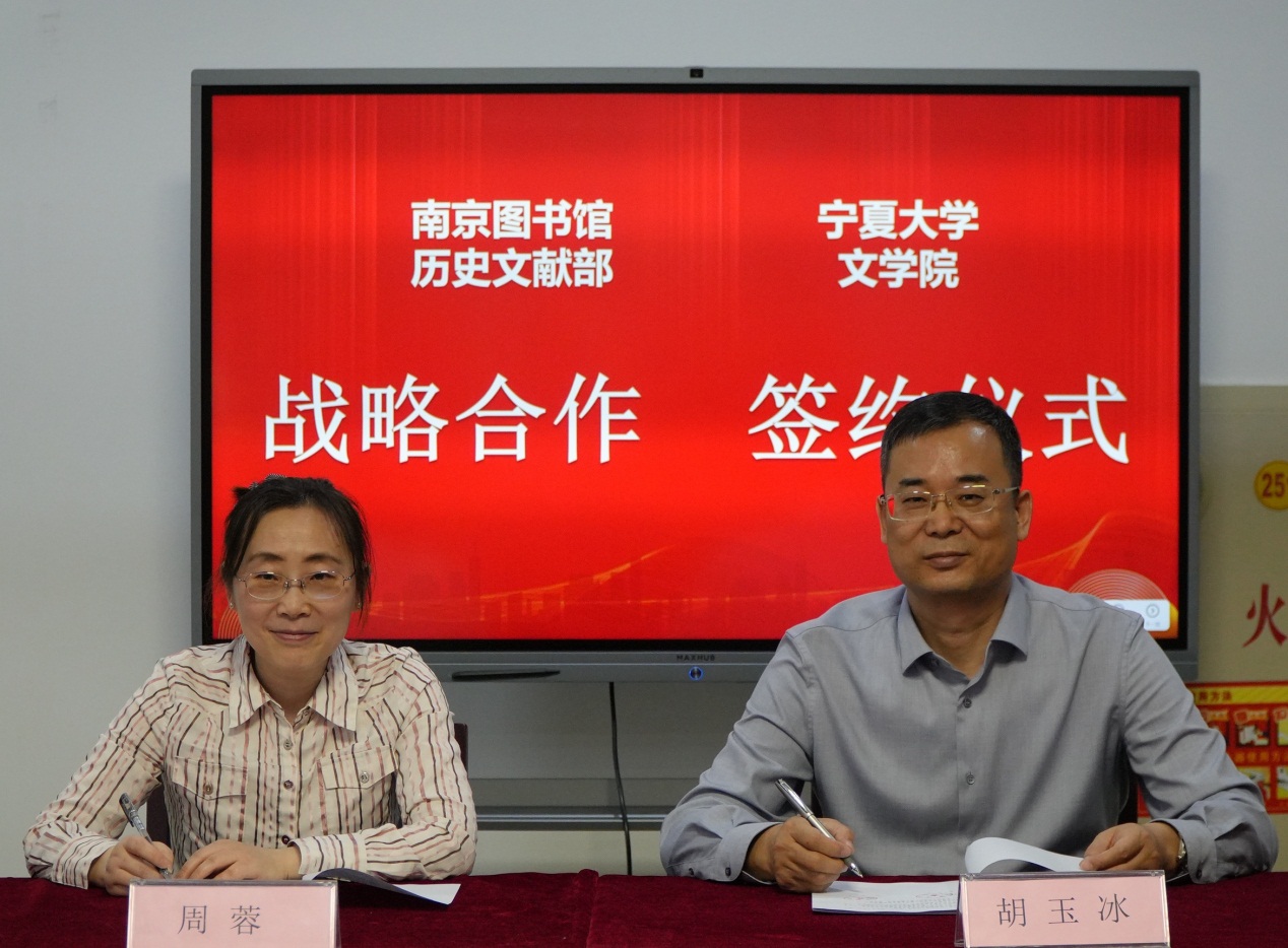 签字仪式上,胡玉冰首先介绍了beat365在线官网入口近些年来的发展情况和国家社科基金重大项目“《朔方文库》编纂”相关成果,简要回顾了beat365古籍整理研究事业取得的成绩,指出目前面临的困境和存在的问题。周蓉介绍了南京图书馆历史文献部的主要情况及近年取得的突出成就。她指出beat365在线官网入口经过多年积淀,形成了地域特色鲜明、学科优势突出的教学科研团队和学术风格,在古文献整理与区域文化研究、西北地区语言与文学研究、传统语言文字学与传统文化研究等领域实力雄厚,成果丰硕,在学界产生了一定的影响力。南京图书馆存藏、整理、研究古籍与民国文献的部门,具有悠久的历史与丰富的藏品,多年来形成了以版本目录为核心的研究团队,是国内外具有较大影响的公共馆藏服务部门。双方将立足长远,发挥各自所长,共同探讨古代文献的整理、研究与出版的相关问题,密切合作,进一步提升双方文献整理研究水平。