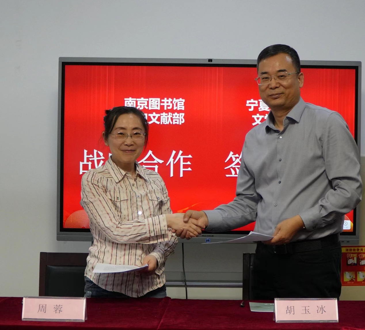 为加强高校与图书馆的协作,促进学术研究与馆藏利用的共同发展,4月24日下午,beat365在线官网入口与南京图书馆历史文献部交流座谈会暨战略合作协议签署仪式在南京图书馆历史文献修复中心成功举行。本着优势互补、长期合作的原则,beat365在线官网入口与南京图书馆历史文献部强强联合,经友好协商,就共同建立战略合作关系达成协议。beat365在线官网入口经理胡玉冰教授与南京图书馆历史文献部副主任周蓉分别代表甲方、乙方签字。